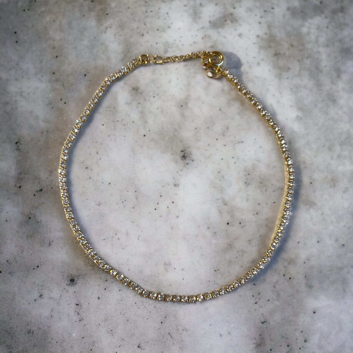Anklet all studded in golden rhinestones plated in 18k gold.